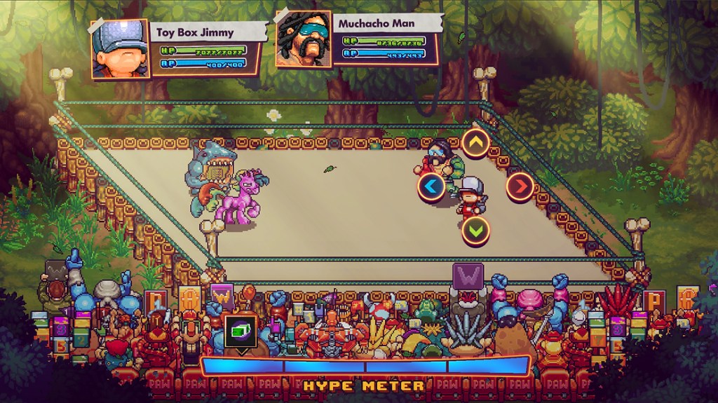 The story in WrestleQuest is something wrestling fans will appreciate. The storyline here follows two different guys that have similar dreams. Brink Logan comes from a wrestling family and teams with Stag Logan. Their tag team is called the “Honest Bucks,” and they are trying to make their way up to PAW. Think of PAW as basically the WWE in the real world. The other main character is the Muchacho Man, and yes, Macho Man Randy Savage is his idol. He is trying to preserve the integrity of the sport while also hoping to make it big. There is an eclectic cast of characters that you will meet as you ascend up the ranks of the wrestling world, just like in real professional wrestling.